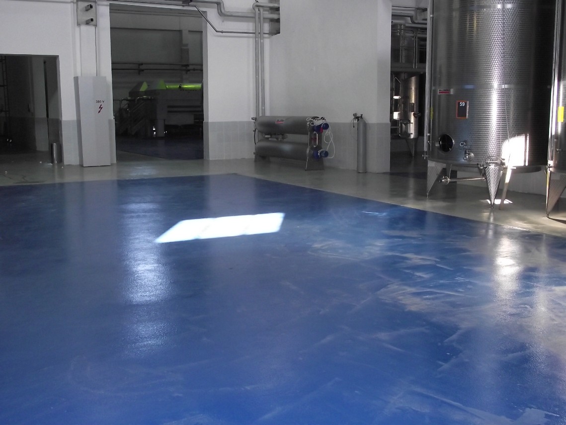 Şəki şərab zavodu. Döşəməyə eboksidin çəkilməsi.